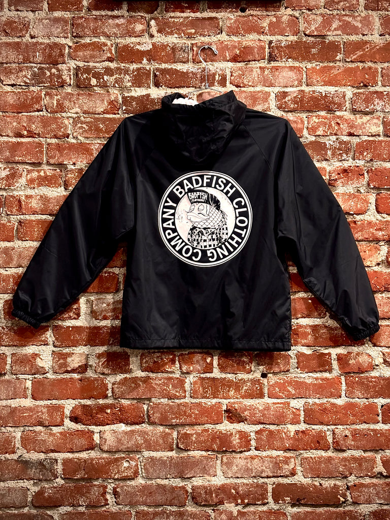 Badfish Badge Hooded Windbreaker combines lightweight protection with functional design. The six-button front snap allows quick layering adjustments, while the hood provides coverage in variable conditions.